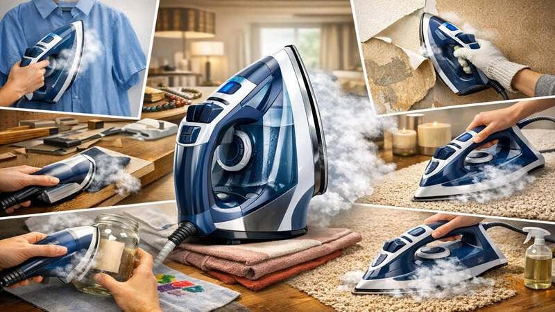 Use your iron’s steam function to refresh sofa cushions and upholstered chairs, eliminating odors and light creases. Simply place the iron over the fabric, allowing the steam to penetrate. This method mimics professional upholstery steamers and is advocated by sites like The Spruce as a quick substitute for expensive cleaning treatments. (thespruce.com)