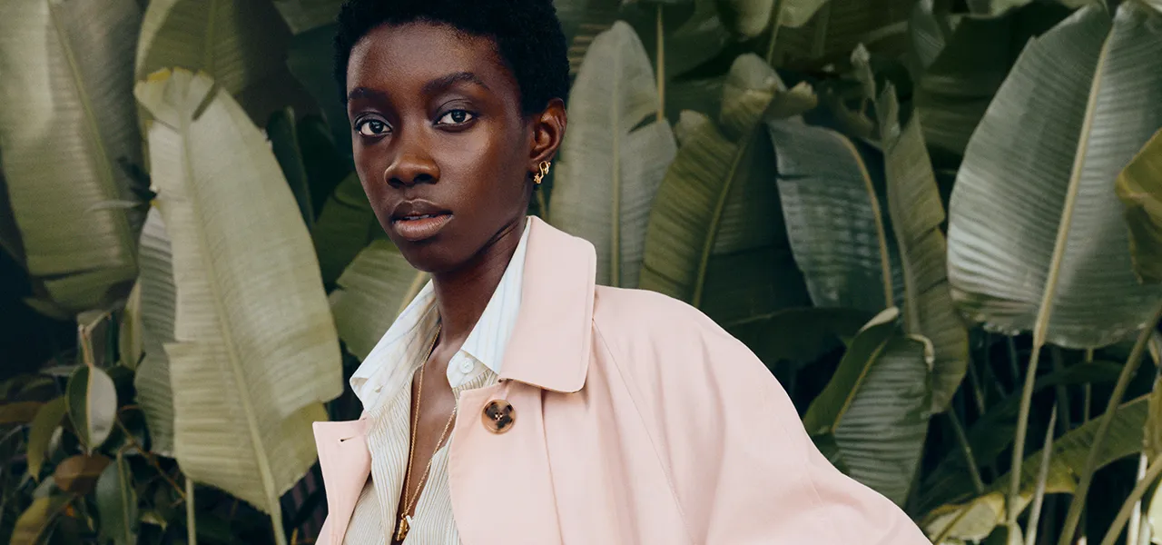 Tropical gabardine continues this line of development. Each piece uses shower-resistant cotton woven at the Burberry Mill in Keighley, West Yorkshire. Inside, the garments feature a beige Burberry Check trim, linking the collection to a long-standing visual code.