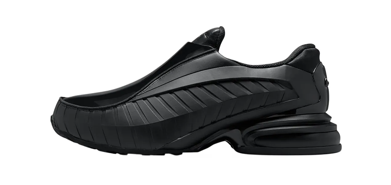 The slip-on format removes visible fasteners and draws attention to the outline of the shoe. This construction aligns with the growing presence of hybrid footwear that draws from both formal and athletic references. The midsole takes a tonal approach, integrating with the upper while featuring visible Max Air cushioning in the heel. This element anchors the shoe to Nike’s performance line, even as the rest of the design shifts towards a more synthetic outsole.