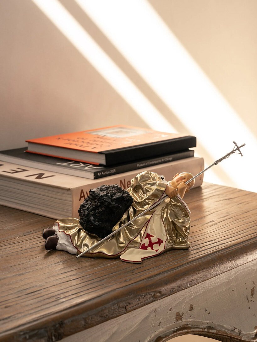 Maurizio Cattelan’s meteorite pope returns as a miniature