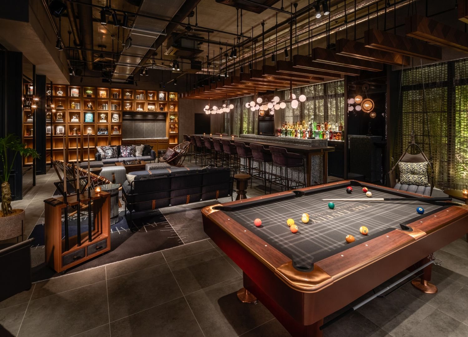 Instead of designing a traditional hotel lobby that functions primarily as a transition zone, we approached the ground floor as a multi-layered social environment. The lobby lounge, bar and communal tables are purposefully integrated into one continuous space, encouraging guests to move freely between working, relaxing and socializing. The furniture arrangement, lighting and attractions were carefully designed so that visitors remain visually connected to the activity around them, naturally reducing the barrier to interaction.