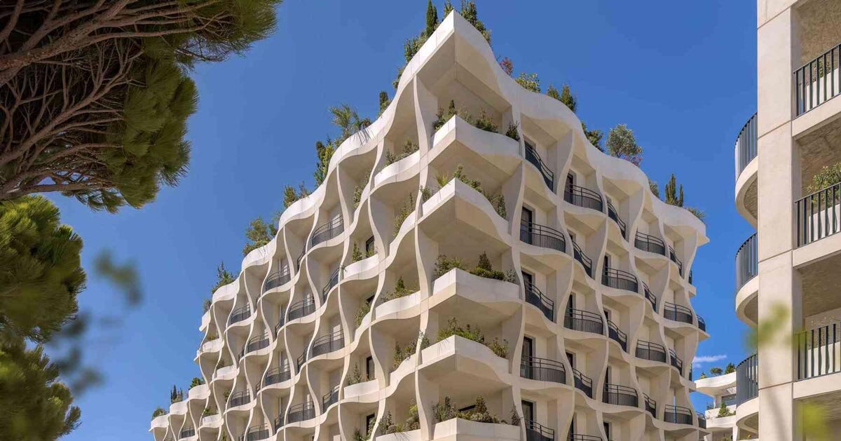 Bioclimatic shell facades shape the Jardins Secrets housing in France