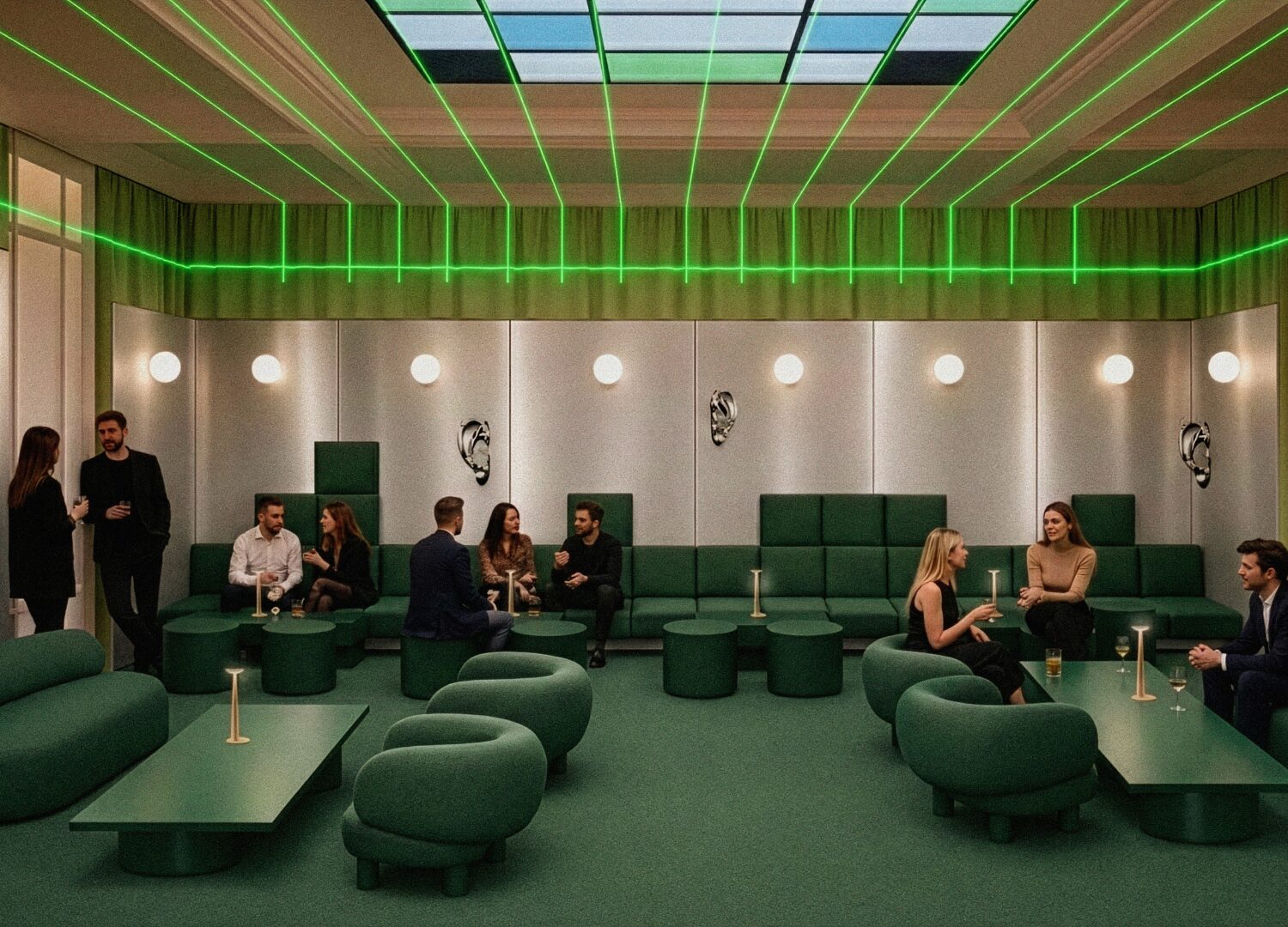 One of the most ambitious projects is Bar Adrenalinean activation at Palazzo Litta by the eponymous furniture brand, in its context MoscaPartners Variations. In three rooms at Boccascena Caffè, a network of microphones records every sound the bar makes, and the data will then be used to compose an original piece of music and inform the physical form of a future sofa. Described as a sound co-design workshop, the bar invites every guest to become a co-author.