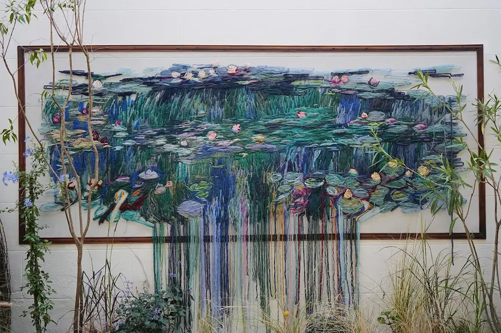 If you think embroidery is only for grandma’s little hoops and pillows, textile artist Catherine Marchenko is here to completely blow your mind. She is famous for traditional stitching and transforming it into ethereal, large-scale contemporary art. Her latest work, Nymphéas Beyond, is a complete showstopper—a huge, Monet-inspired water lily scene that looks more like a painting than a sewing project.