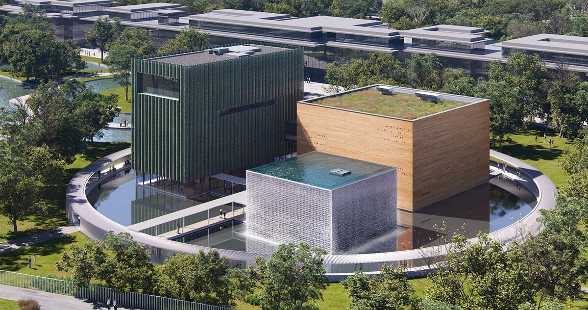 OPEN’s shed culture museum in the shape of earth, glass and bronze