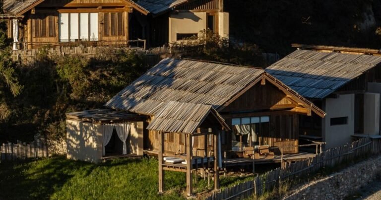 reused timber rebuilds Micro-Village along Mt Located on a ridge at an…