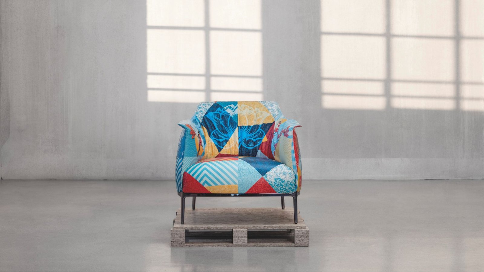 The collaboration brings together two seemingly distant worlds, urban graphic language and cutting-edge craftsmanship, united by a shared commitment to artistic research and a deep sensitivity to nature. Within this work, the Archibald armchair becomes a three-dimensional canvas upon which Fairey constructs a multi-layered visual narrative, transforming a design icon into a contemporary cultural statement.