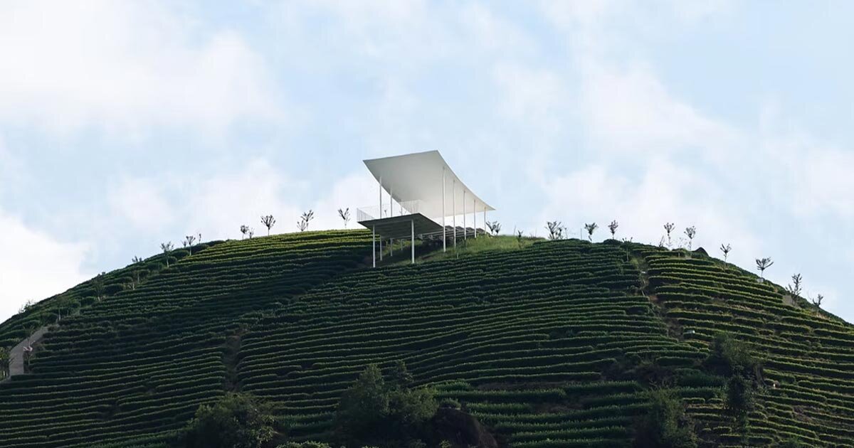 RE+N studio's floating pavilion floats like a delicate white feather over the mountain of Chinese tea - 1