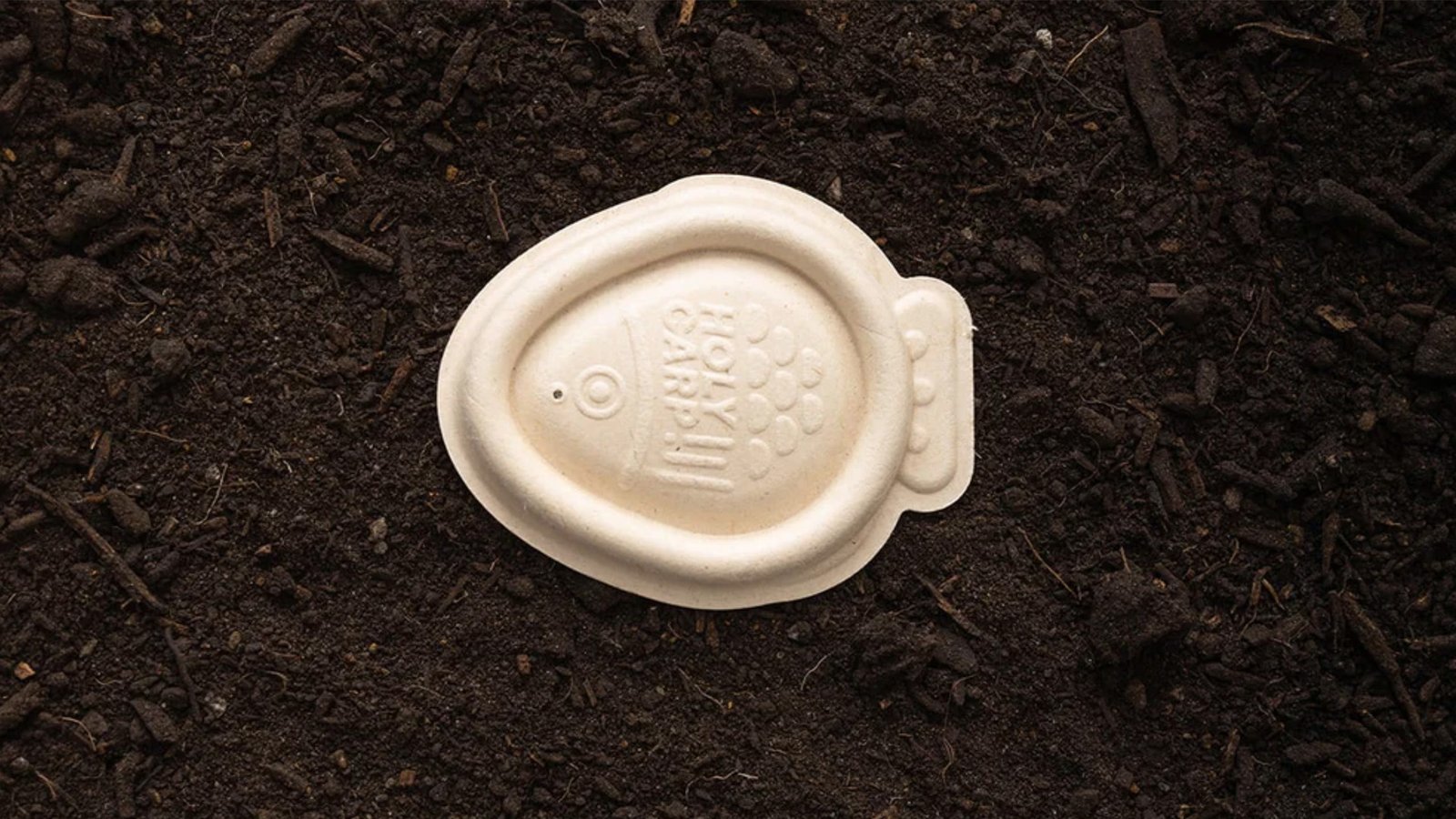 Instead of plastic, Holy Carp! it is made from renewable plant fibers, including pulp derived from bagasse, a by-product of sugar cane processing. The container is designed to be plastic-free, PLA-free and PFAS-free and can decompose in home composting conditions in just a few weeks, rather than remaining in the environment for centuries.