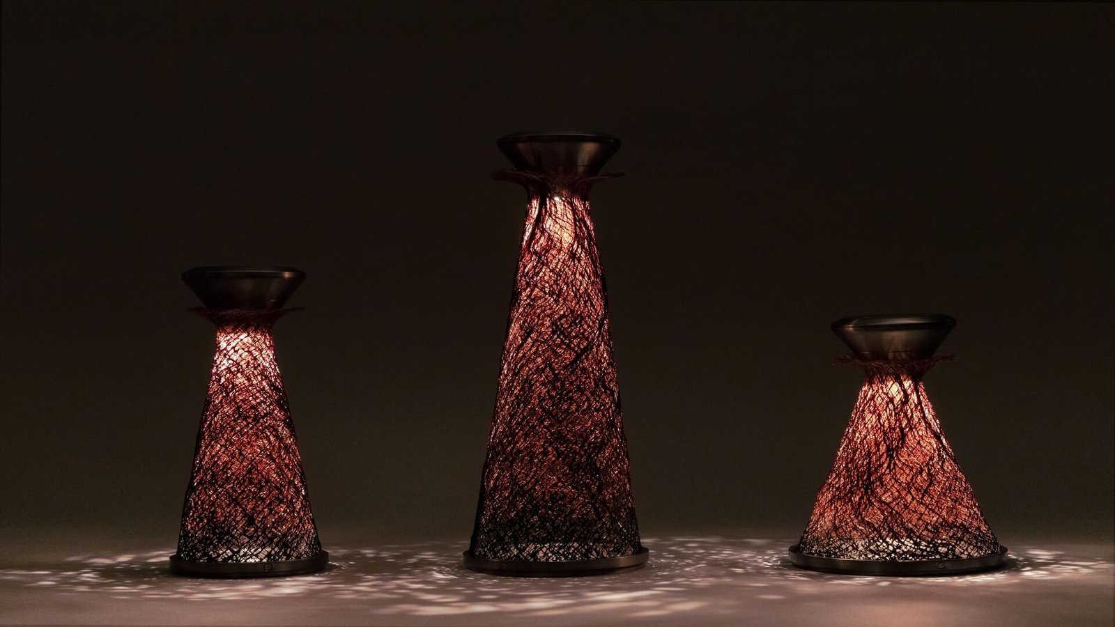 In his heart their practical – as in a research laboratory – is the bark of Trachycarpus fortunei, or shuro, a light, translucent, but surprisingly durable material. Treated with kakishibu, a liquid derived from fermented persimmons, and fortified with iron, the bark reveals a complexity that belies its naturally fragile appearance. As Nagasawa explains: “Shuro bark has attractive qualities such as lightness and distinctive texture, but it also comes with many limitations. Through trial and error with traditional adhesives, we arrived at kakishibu, which maintains the lattice structure while allowing for the free creation of forms.”